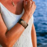 Este brazalete consta de una oreja de mar de 4,5cm de larga y 3 cm de ancha realizada en plata con baño de oro de 24 quilates y una pulsera de cuero marrón. El brazalete mide 3 cm de ancho y 20 cm de largo. El cierre está pensado para 16,5 cm pero se puede adaptar a la medida que necesites. Puedes elegir el tipo de cierre: estrella de mar o caballito de mar. Cada brazalete es meticulosamente elaborado a mano para asegurar calidad y exclusividad.