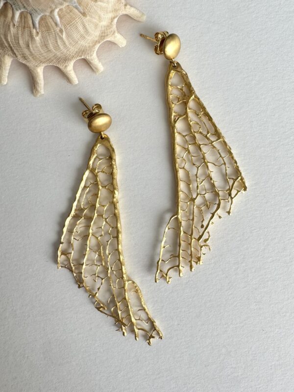 Pendientes con gorgonias en plata con baño de oro. Flexibilidad y adaptación.