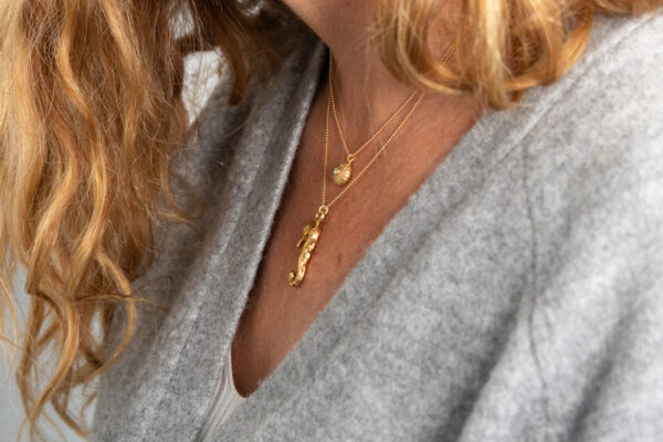 Colgante con caballito de mar en plata con baño de oro. Amor.