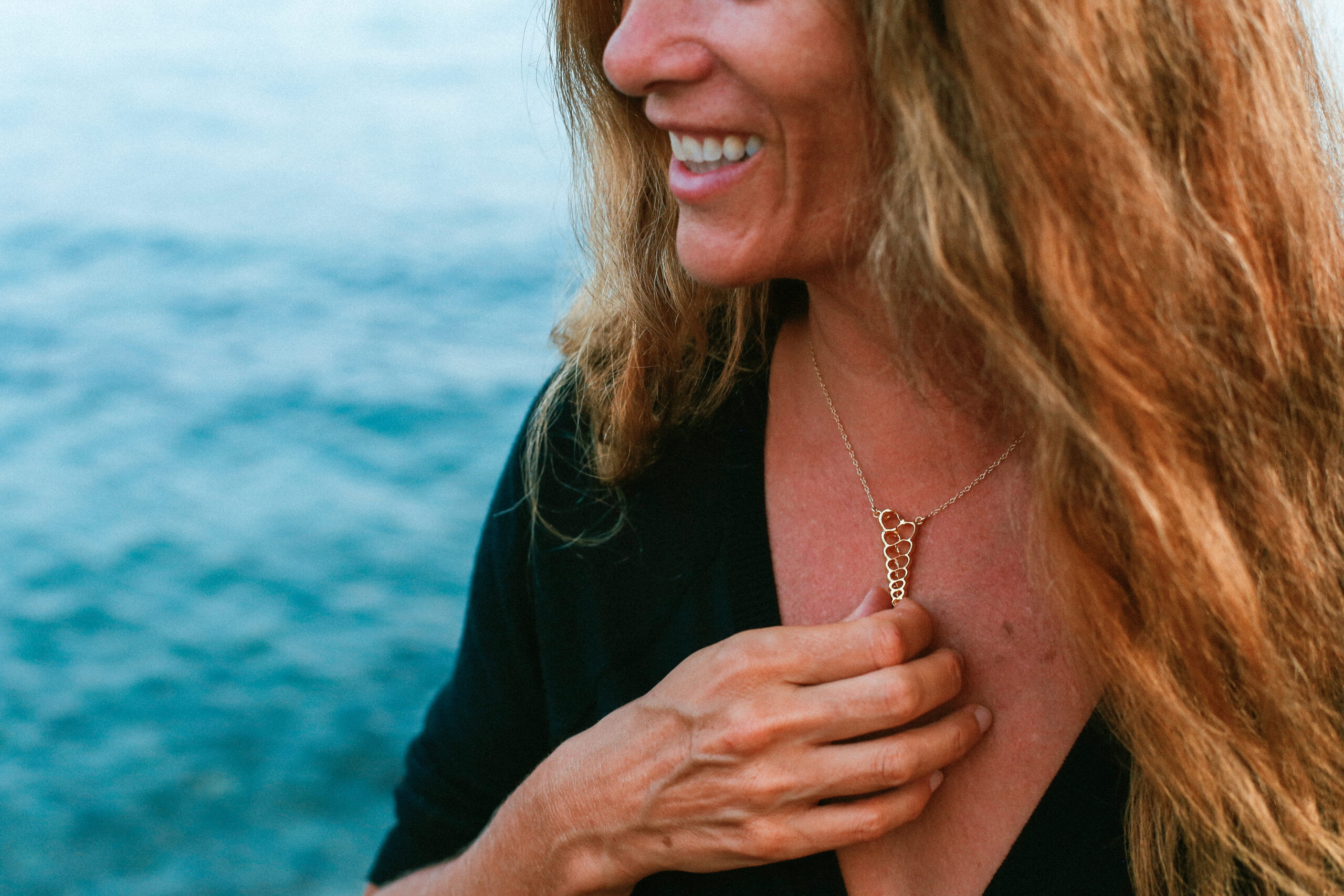 Colgante con caracola partida en plata con baño de oro. Crecimiento en ciclos.