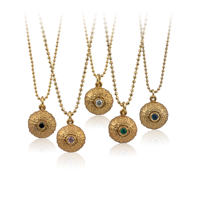Colgante Erizo De Mar Pequeño Con Circonita Aguamarina Oro