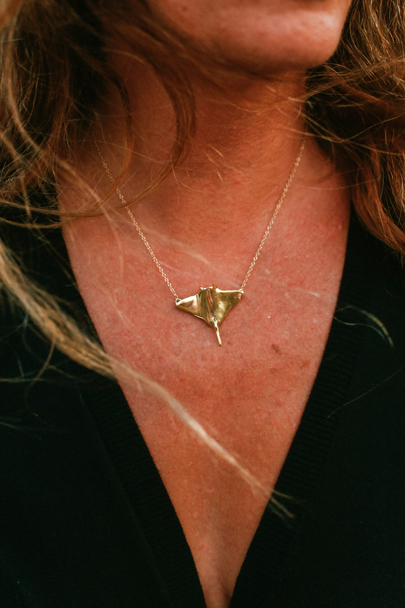 Colgante mantarraya pequeña en plata con baño de oro. Libertad y autenticiadad.