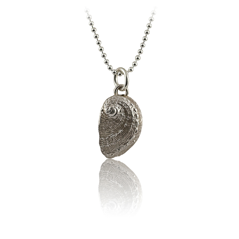 Este colgante está compuesto por una oreja de mar de plata que mide 1 cm. Incluye cadena de plata de 40 cm.