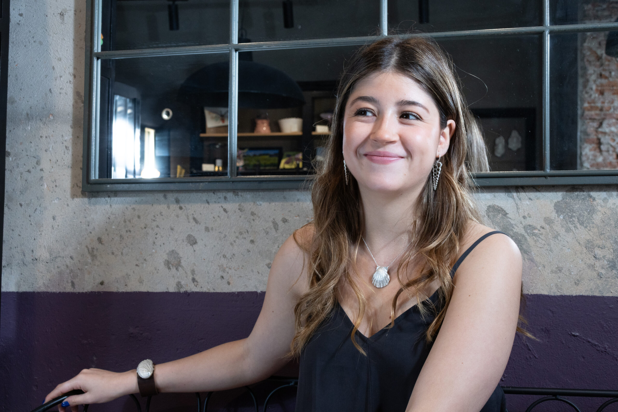 Modelada a mano a partir de una vieira natural y realizada en plata utilizando la técnica de microfusión. Mide 3cm por 3,5 cm.Incluye cadena de plata de 40cm.