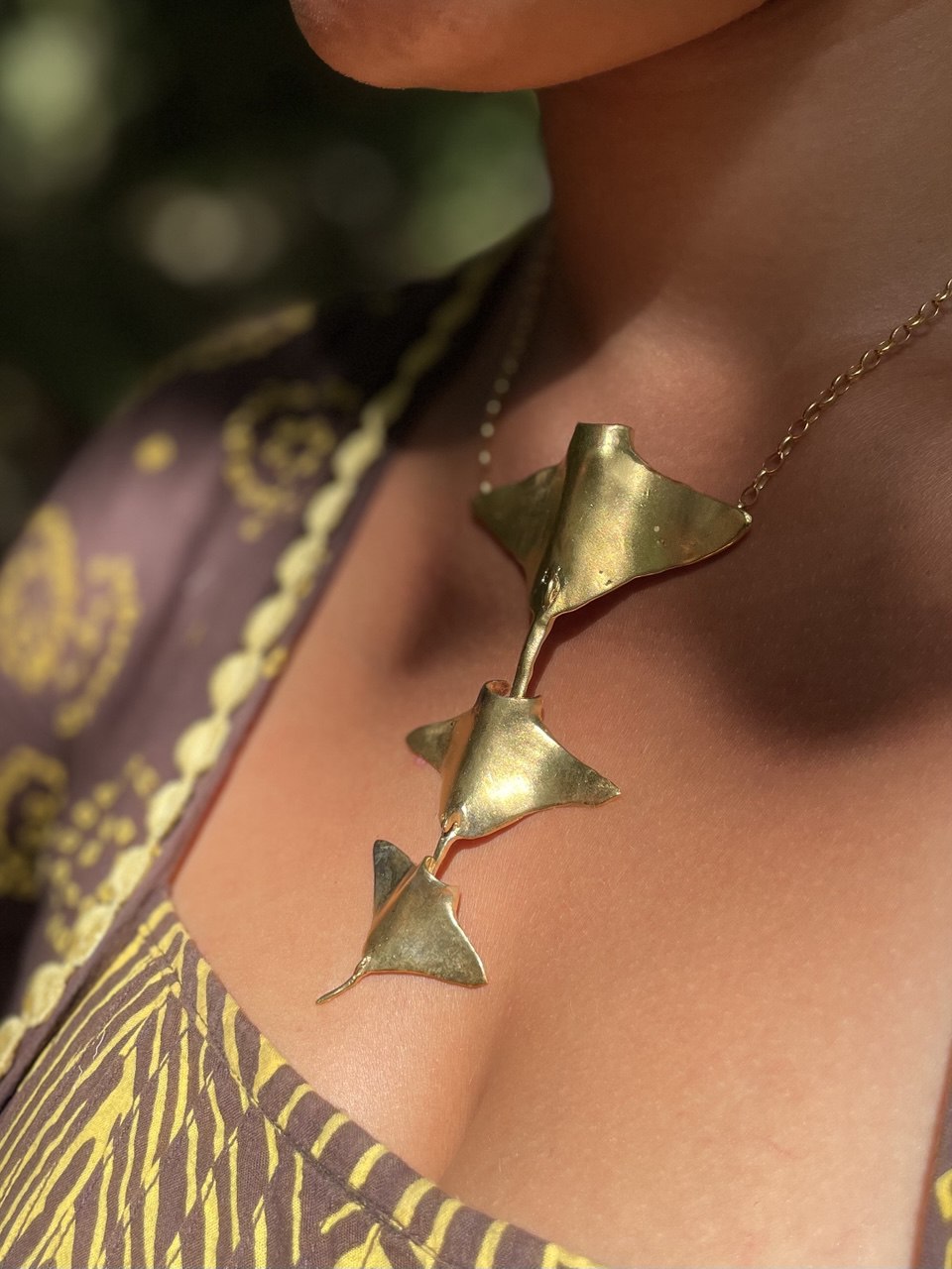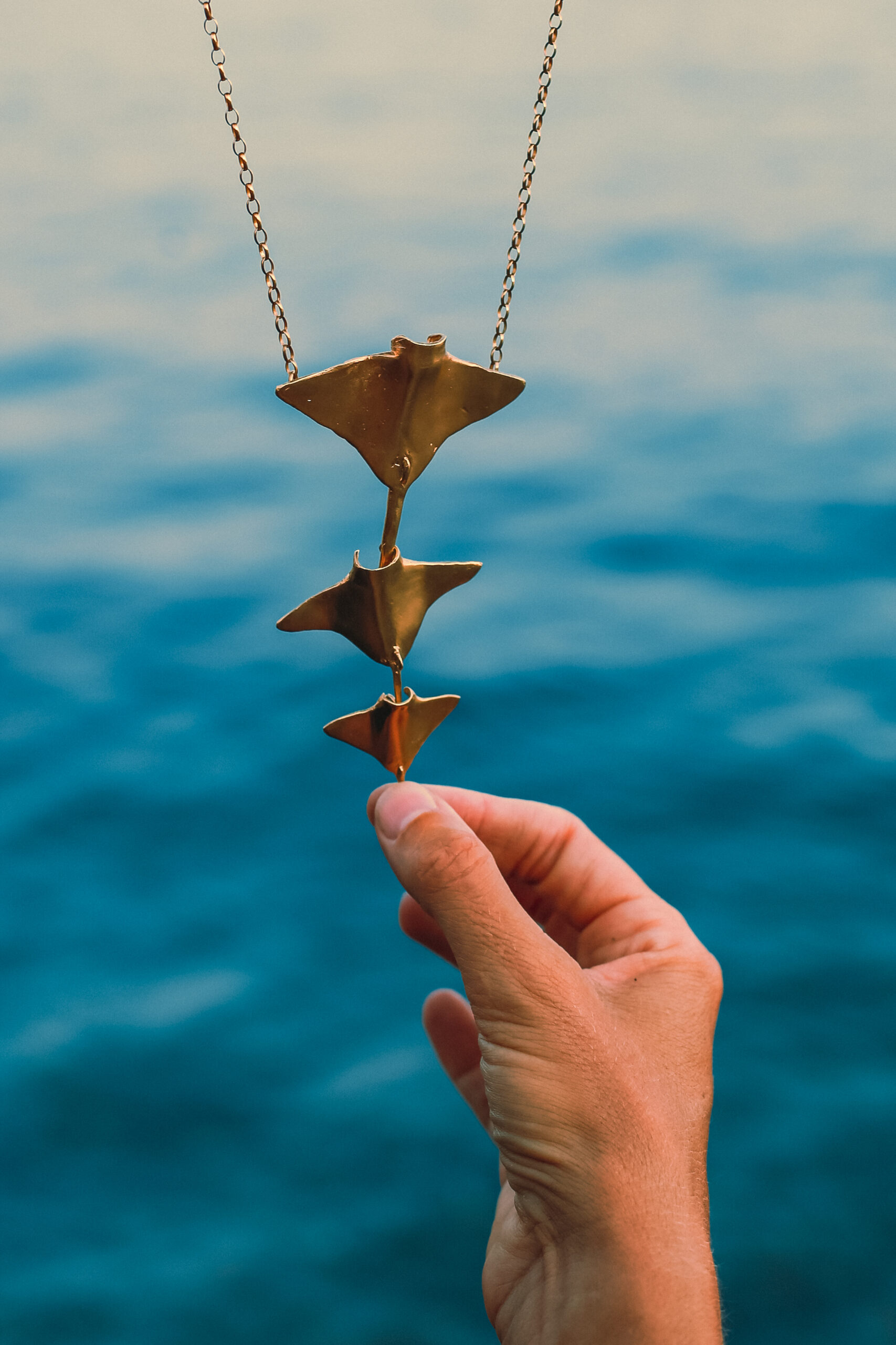 Colgante 3 mantarrayas en oro. Libertad y autenticidad