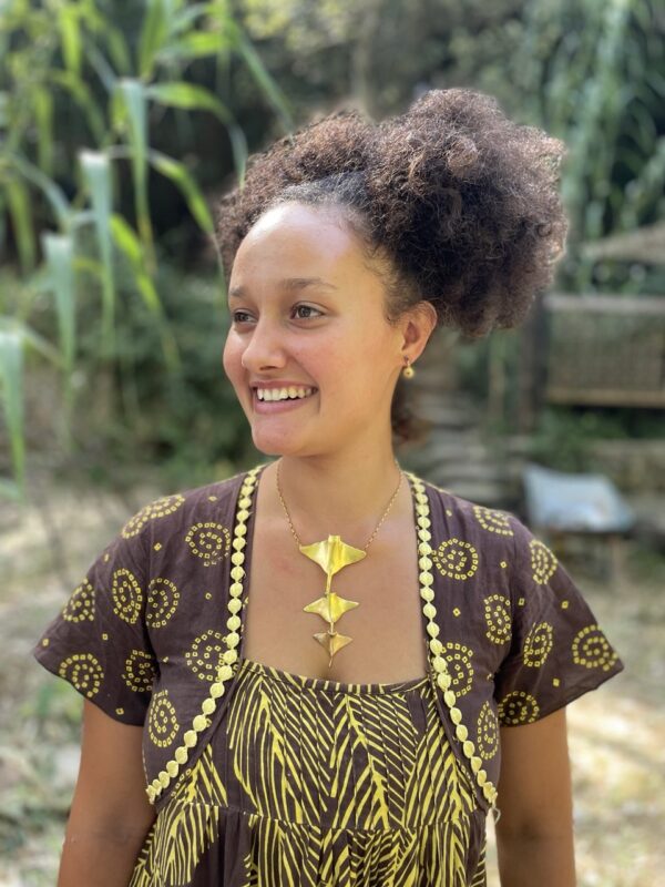 Este colgante está compuesto por tres mantarrayas que disminuyen de tamaño, creando un efecto de movimiento. Realizado en plata con baño de oro de 24 quilates, cada mantarraya está cuidadosamente trabajada a mano. Mide 10,5 cm de largo con 6 cm en la parte más ancha la cadena de plata bañada en oro mide 50 cm y es ajustable a la medida que necesites.