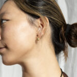 Estos pendientes están compuestos por un erizo de mar modelado en cera y fundido en plata con baño de oro de 18 quilates, con una circonita negra engastada en su centro. En la parte superior, una circonita negra facetada. El erizo mide 1 cm y el pendiente completo mide 1,5 cm. Cierre de presión en plata bañada en oro.