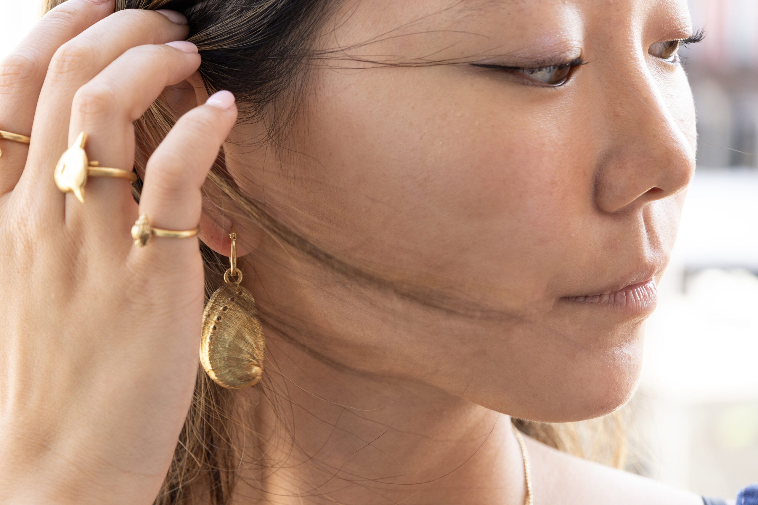 Pendientes aro con oreja de mar en plata con baño de oro. Intuición y escucha interior.