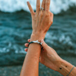 Esta pulsera está realizada con un marrajo de 3,5 cm de plata sobre cuero. Diseñada para ajustarse cómodamente a tu muñeca, combina elegancia con simbolismo. Cada pulsera es meticulosamente elaborada a mano.