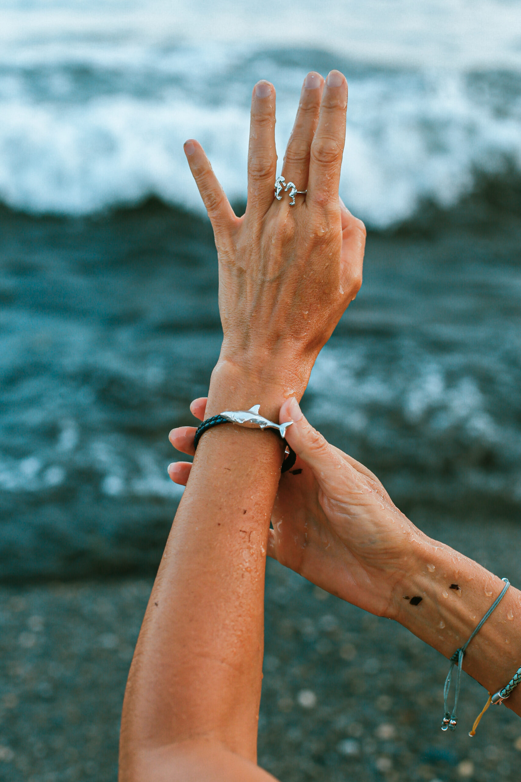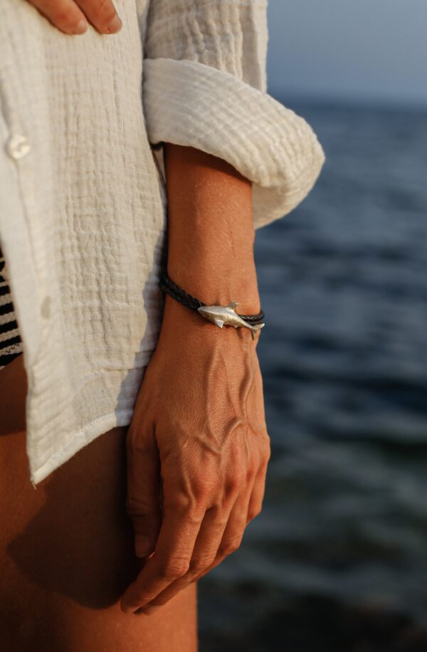 Pulsera de tiburon marrajo en plata. Perfección natural y confianza.